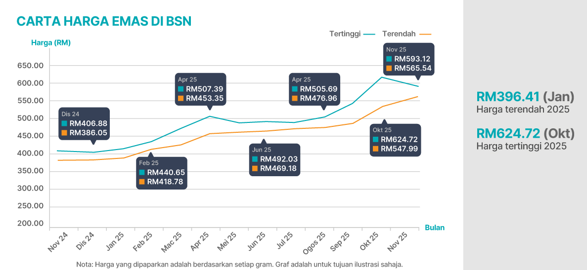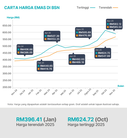 - Harga emas di BSN telah meningkat lebih daripada 60% sejak dilancarkan pada Ogos 2023.
