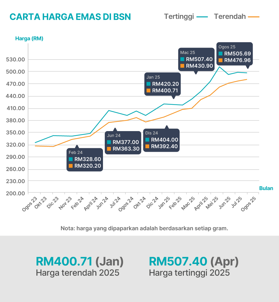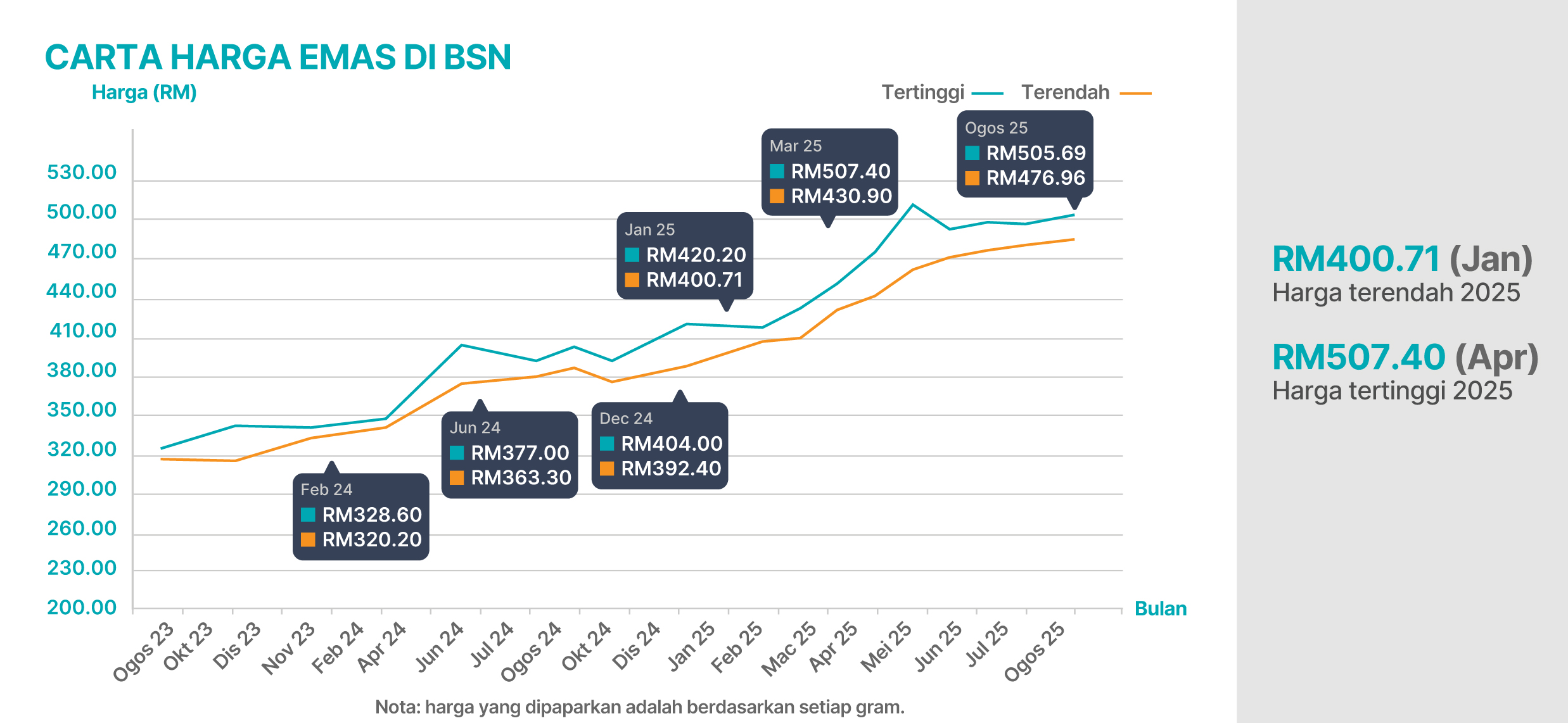 - Harga emas di BSN telah meningkat lebih daripada 60% sejak dilancarkan pada Ogos 2023.