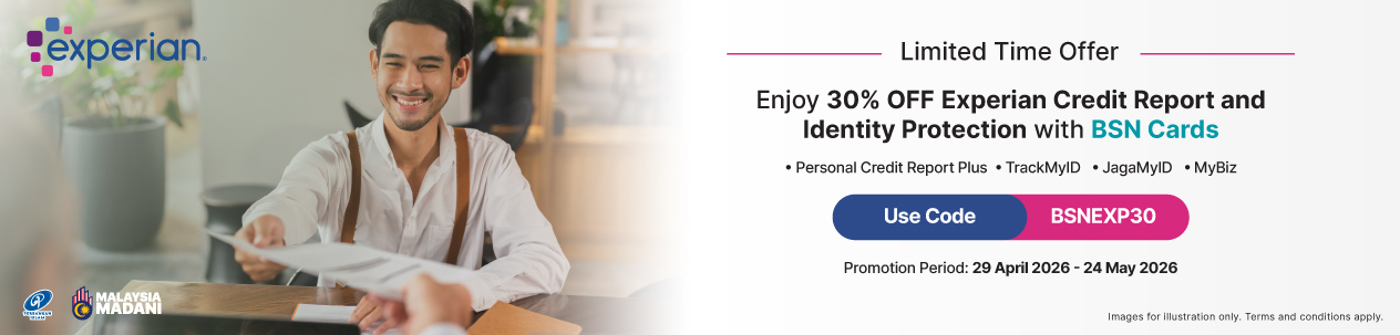 - The discount is valid for purchases made via https://www.mycreditinfo.com.my/home/signup/bsn only, excluding listing on third-party platforms.