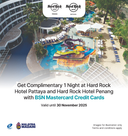 Enjoy 3 nights for the price of 2 nights (one night complimentary) with BSN Mastercard Credit Cards!