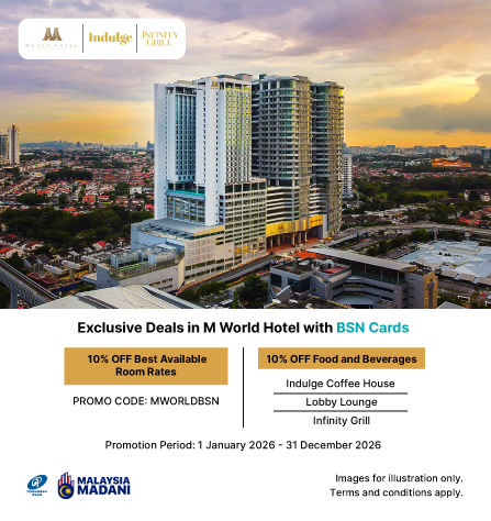 10% OFF Best Available Room rates (applicable for all room categories) Use Promo Code: MWORLDBSN upon checkout and walk-in. |