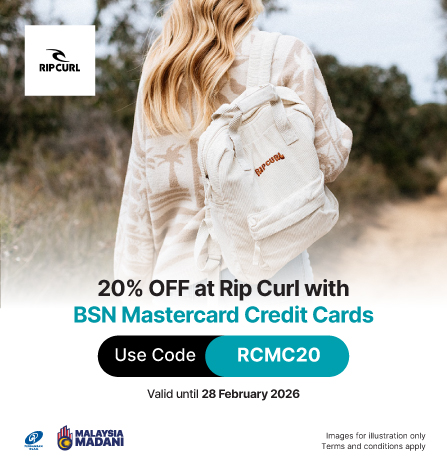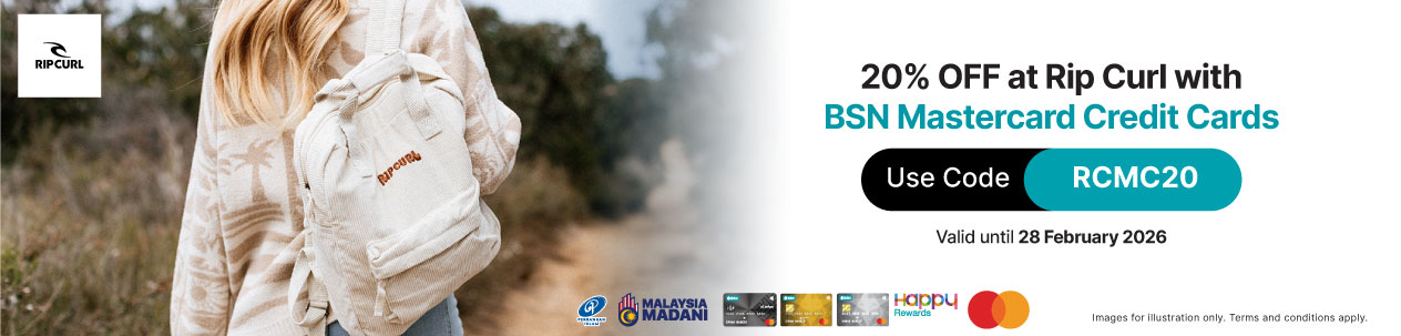 Enjoy 20% OFF when you shop online at Rip Curl's official website with BSN Mastercard Credit Cards. Enter Promo Code: RCMC20 upon checkout. |