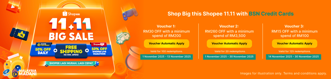 - The Promotion is valid for one-time use only, regardless of the number of Shopee accounts owned by the BSN Credit Cardmembers.