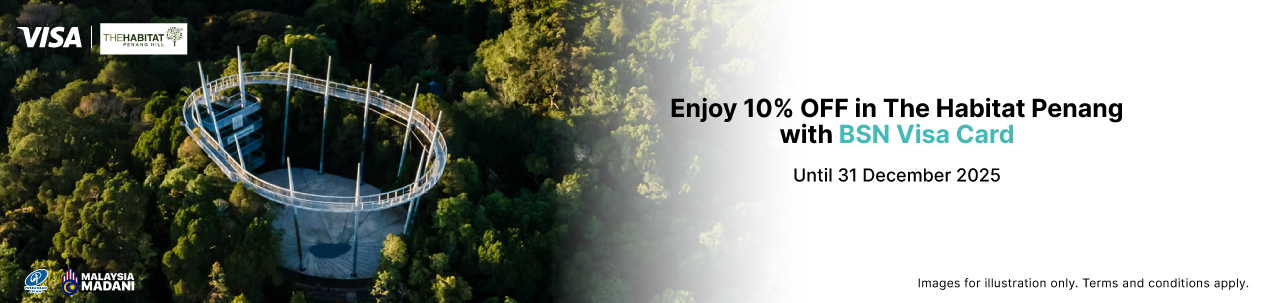 Discover a seamless escape to nature at The Habitat Penang, where every moment refreshes your soul. Enjoy 10% OFF Standard Entry Tickets with BSN Visa Cards. |