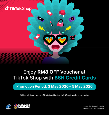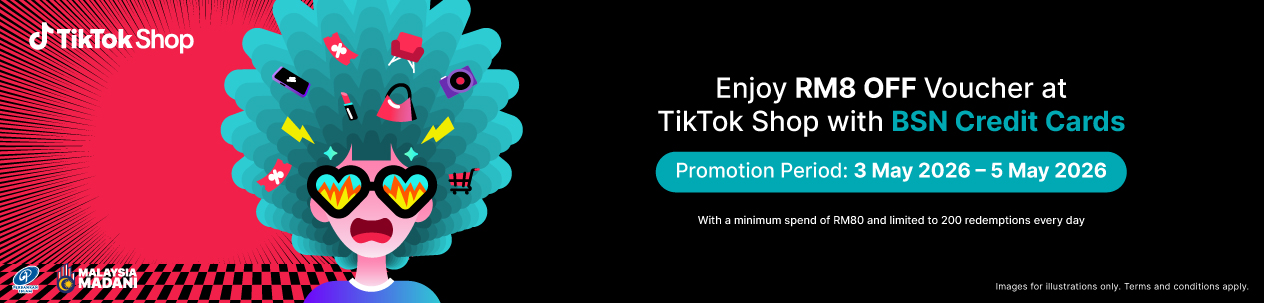 Shop the trends and enjoy RM8 OFF voucher with a minimum spend of RM80 on TikTok Shop using BSN Credit Cards. Valid for 200 redemptions daily. |