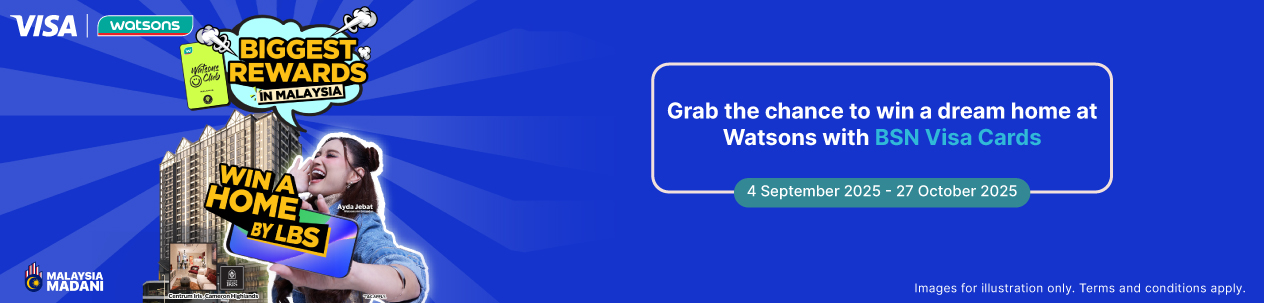 - This Campaign is open to all Watsons members issued by WATSONS MALAYSIA and make purchases with BSN Visa Cards.