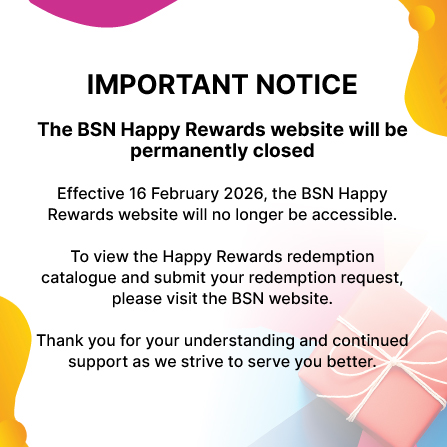 A loyalty programme that truly rewards you, every time you spend with your BSN Credit Card. Earn Happy Points as you spend and use them to redeem gifts.