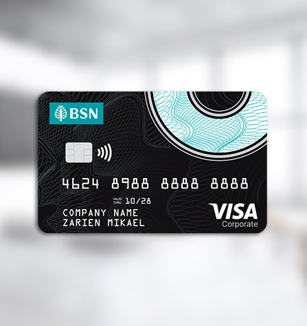 The BSN Visa Corporate Card-i is a Shariah compliant credit card designed to meet the business and payment needs of the Public Sector. The card provides authorised employees the convenience they need to pay for approved travel or business-related expenses both locally and overseas.